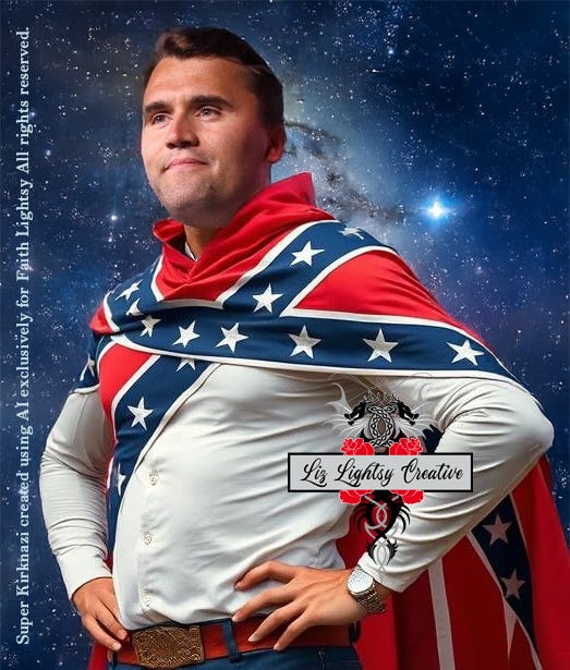 September 10th a white, misogynistic, patriarchy loving, woman hating, gay bashing, Black hating, colonizer descendant was executed while speaking to a predominantly white audience at a predominantly white college in a state where 63% of the adult population identifies as Christian and more than half of those adults are members of a conservative religion who’s highest 12 officials are all white men (cough cough…it’s Utah IYKYK and I do indeed know) like good Super Kirknazi and ironically his last two words were “gang violence”.